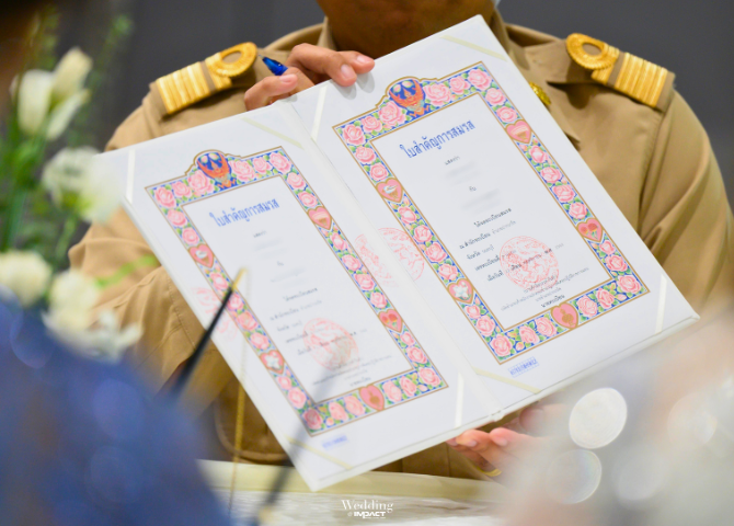 ตัวอย่างการจดทะเบียนสมรสในวันแต่งงานภายในสถานที่จัดงานแต่งงานของอิมแพ็ค เมืองทองธานี