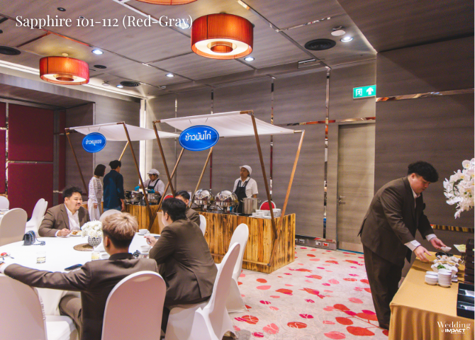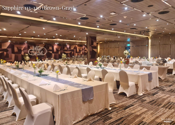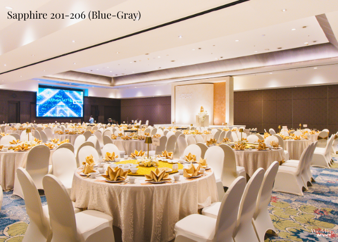 Sapphire Room เป็นห้องจัดงานแต่งงานอีกหนึ่งตัวเลือกที่คุ้มค่าและได้รับความนิยม สำหรับงานขนาดกลางที่มีแขกประมาณ 200 – 300 คน ด้วยการออกแบบที่ทันสมัยและมีให้เลือกถึง 3 สไตล์ ช่วยให้คู่รักสามารถเลือกบรรยากาศของงานได้ตามคอนเซ็ปต์ที่ต้องการ พร้อมมอบความเป็นส่วนตัวที่ลงตัว
