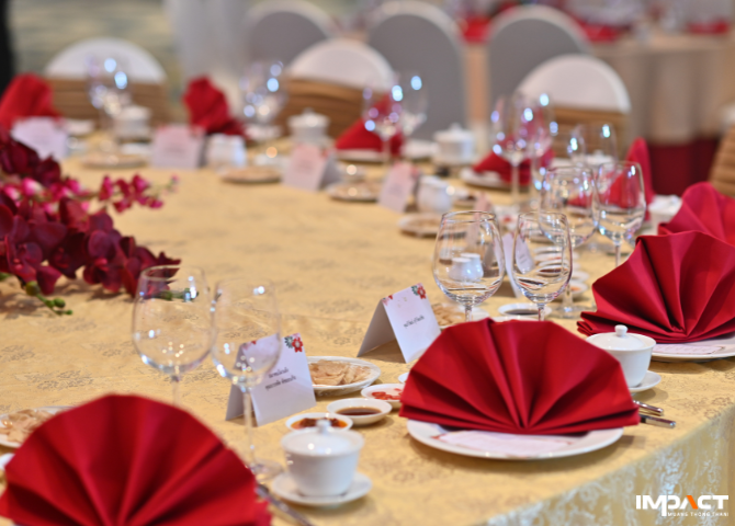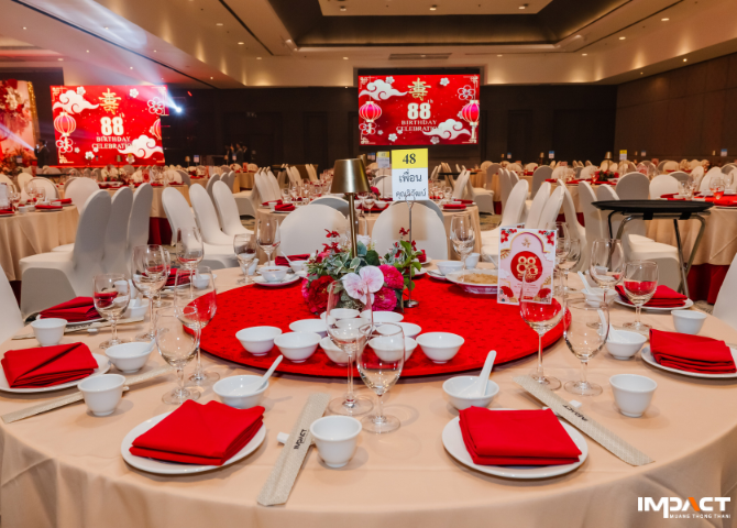 ในส่วนของการจัดเลี้ยง อาหารสำหรับโต๊ะ VIP ให้บริการแบบ Individual Set ระดับ VVIP ส่วนโต๊ะจีนเสิร์ฟอาหารจากร้าน Hong Kong Fisherman ซึ่งเป็นร้านอาหารจีนชื่อดังของอิมแพ็ค เมืองทองธานี เพื่อให้ทุกท่านได้รับประสบการณ์ที่ดีที่สุดในงานวันเกิดที่สำคัญที่สุดของครอบครัว