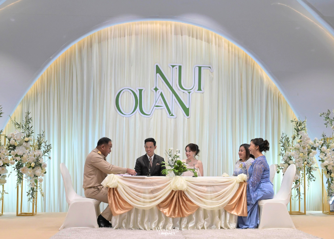 ตัวอย่างการจดทะเบียนสมรสในวันแต่งงานภายในสถานที่จัดงานแต่งงานของอิมแพ็ค เมืองทองธานี